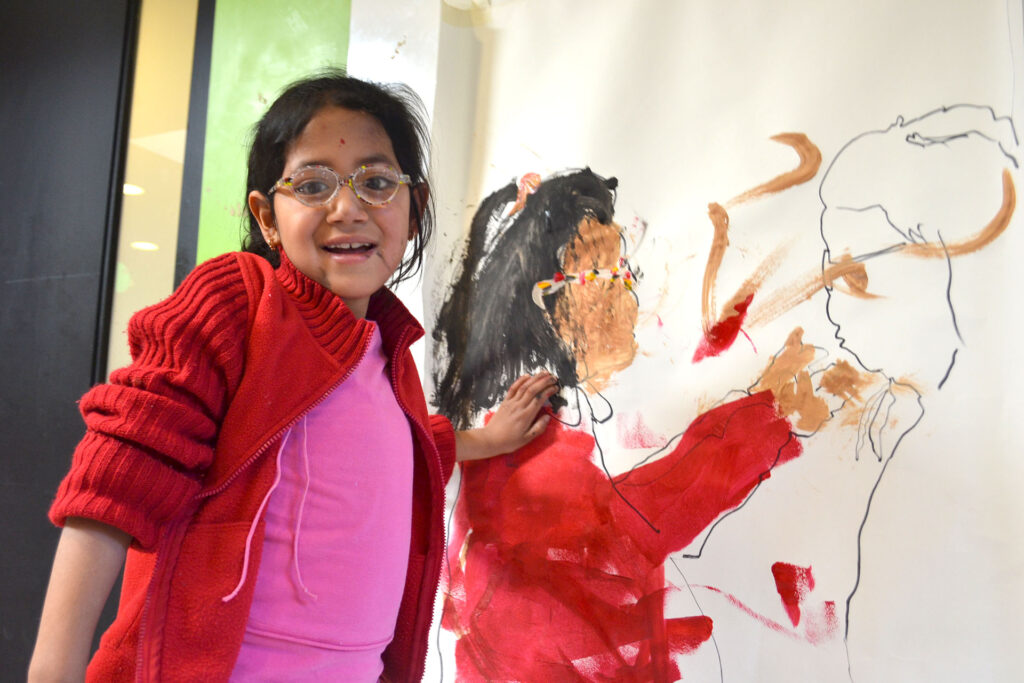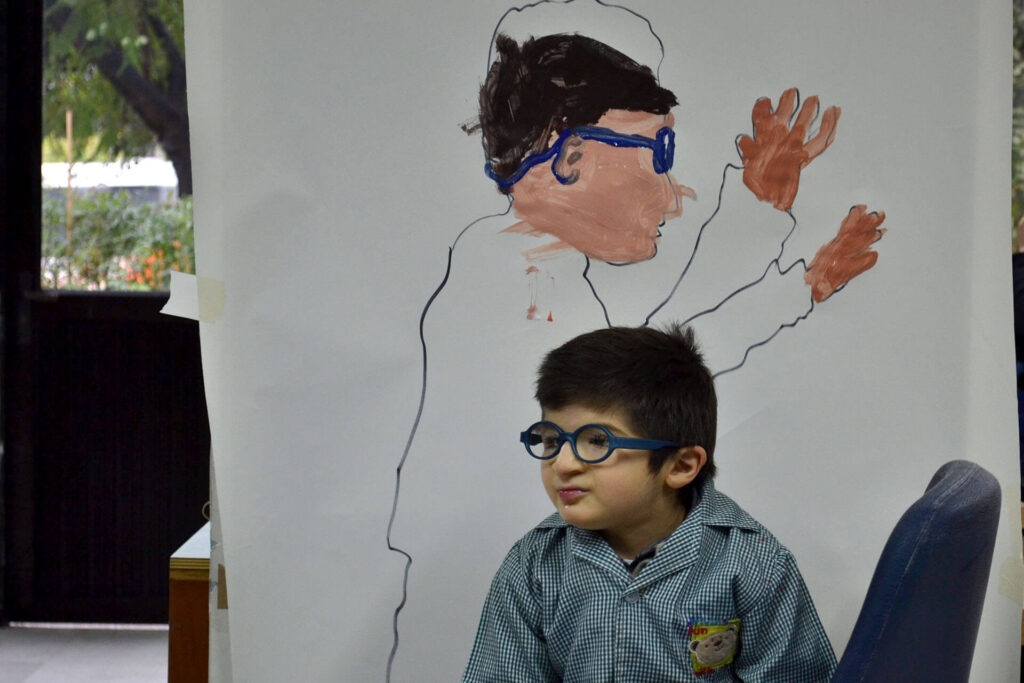El proceso comenzó con un juego de sombras, una dinámica teatral y lúdica donde se marcaban las siluetas de los niños sobre papelógrafos. A medida que sus sombras eran delineadas, surgía un espacio de exploración en el que cada uno reconocía las formas de su cuerpo y sus características únicas.