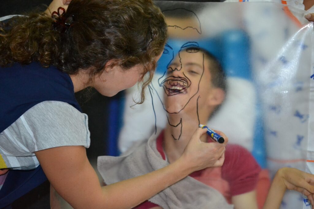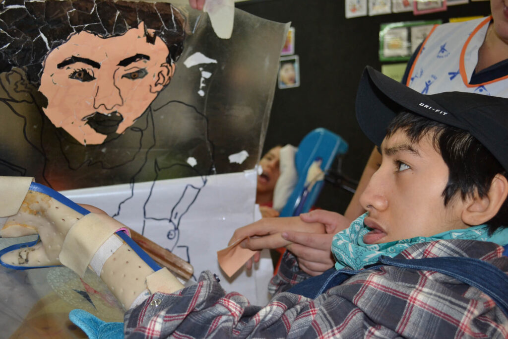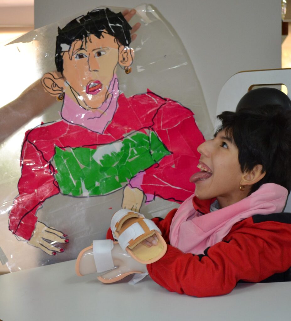 La exposición Reflejos nos invita a descubrir el mundo interior de los niños y jóvenes con parálisis cerebral, abriendo una ventana a su expresión y percepción personal. A través del arte terapia, cada participante exploró su propia identidad mediante la proyección de sombras y el reflejo en espejos, construyendo imágenes de sí mismos con pintura y papeles de colores.